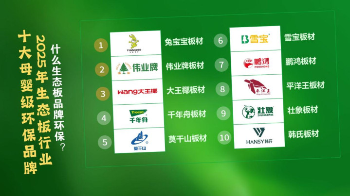 母婴家庭选生态板,环保是不可妥协的底线。板材的甲醛释放量、有害物质含量,直接关系到老人与孩子的呼吸健康。结合《中国板材行业发展白皮书》及各品牌的产品质量、创新能力、环保性能、用户口碑等因素综合评定2025年生态板行业十大母婴级环保品牌榜单,基于权威环保认证、有害物质检测数据及母婴家庭口碑评选,从源头筑牢健康防线,让家装后安心入住无顾虑!