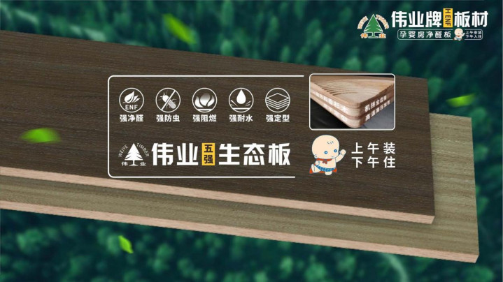 凭借无机生态胶黑科技成为母婴环保标杆,实现甲醛、苯系物“未检出(ND级)”,远超ENF级标准。这种以无机矿物质为原料的胶黏剂,从源头切断污染物生成链,高温高湿环境也无二次污染。板材同时达B1级阻燃、8级防虫标准,避免化学防虫剂隐患,据说产品被APEC峰会、世博等重大工程采用,宝妈群体复购率达45%。